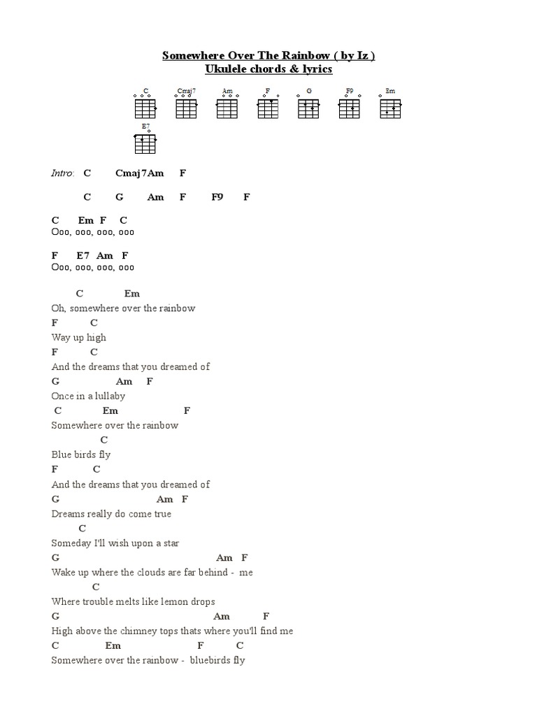 Israel Kamakawiwoole Over The Rainbow Ukulele Dowload Anime Wallpaper Hd Ukulele chords & lyrics on 2 sheets ( pdf ) ( thanks to lassie66 for creating the pdf ) standard reentrant tuning ( g c e a ) strumming first learn the strumming as it is shown in the beginning of the video.